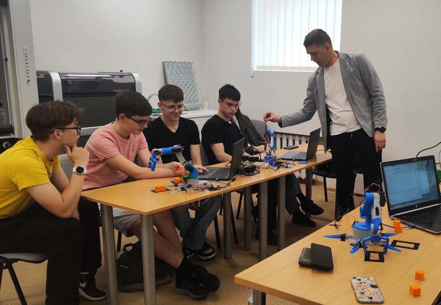 Mokslo darbuotojų dr. Urtės Ciganės ir dr. Justo Cigano vestų užsiėmimų dėmesys sutelktas į projektavimo sritį. Moksleiviai dirbo naudodami Autodesk Fusion programinę įrangą: kūrė individualius kubelių modelius su vardų inicialais, suprojektuoti objektai buvo spausdinami 3D spausdintuvu. Vėliau užsiėmimų dalyviai konstravo ir programiškai valdė roboto rankos prototipą, o jų sukurti kubeliai tapo praktinių užduočių dalimi – robotas turėjo kubelius paimti, perkelti ir išdėlioti. Taip moksleiviai sujungė automatikos, gamybos ir projektavimo žinias, buvo sistemingai ugdomos inžinerinio projektavimo, technologinės kūrybos ir problemų sprendimo kompetencijos.