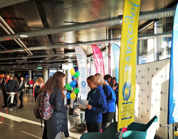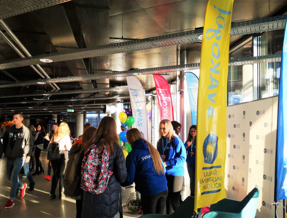 Prie Šiaulių valstybinės kolegijos stendo moksleivių laukė puikiai nusiteikusi kolegijos atstovų komanda, kuri kvietė išbandyti smegenų bangomis valdomus žaidimus, priminė pirmosios pagalbos žingsnius. Moksleivių laukė ir kitos smagios atrakcijos, pokalbiai apie ateities planus, profesinius pasirinkimus, studijas.