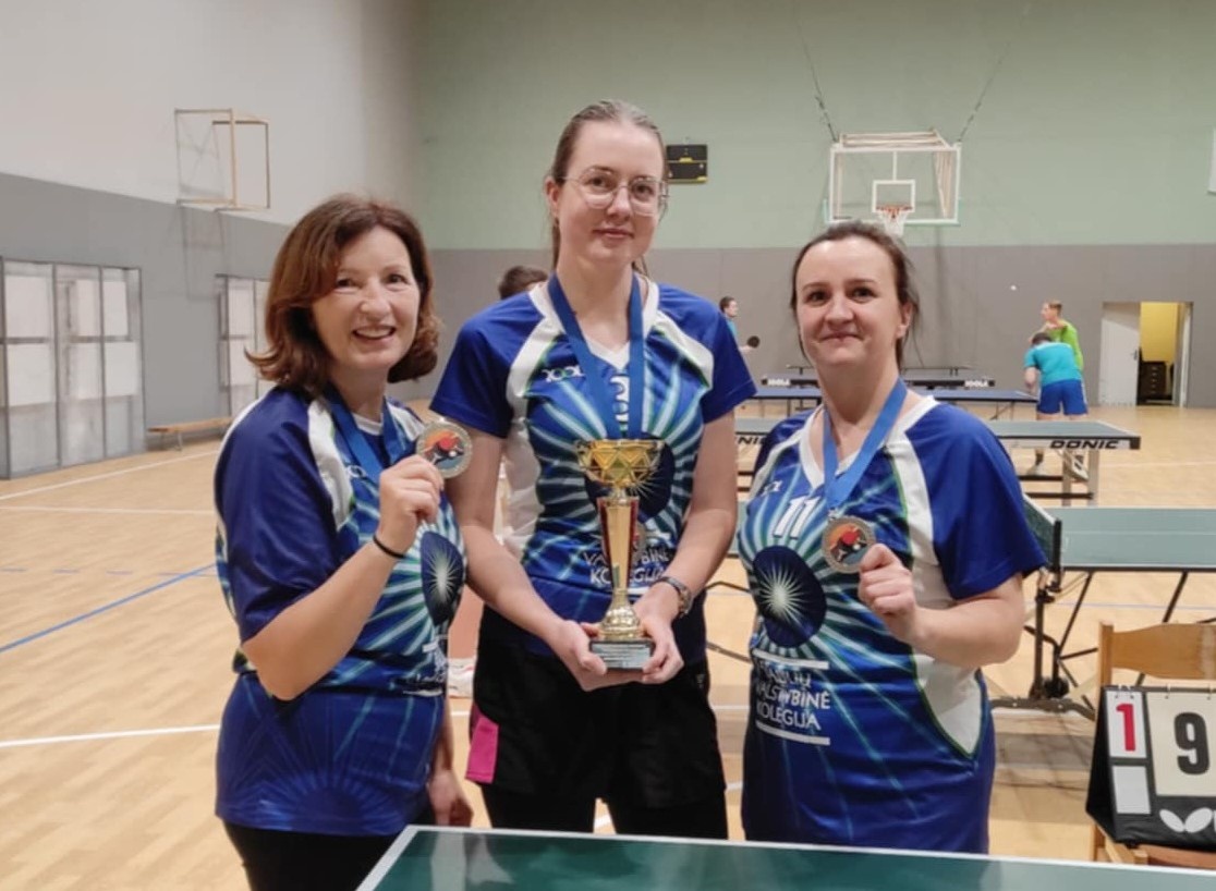 Mūsų kolegijos merginos po įnirtingų kovų, tik 1 tašku nusileidusios Vilniaus kolegijos tenisininkėms, iškovojo II vietą ir džiaugėsi sidabro medaliais. Pirmąją vietą iškovojo Vilniaus kolegijos stalo tenisininkės, Kauno kolegijos merginos liko trečioje vietoje.