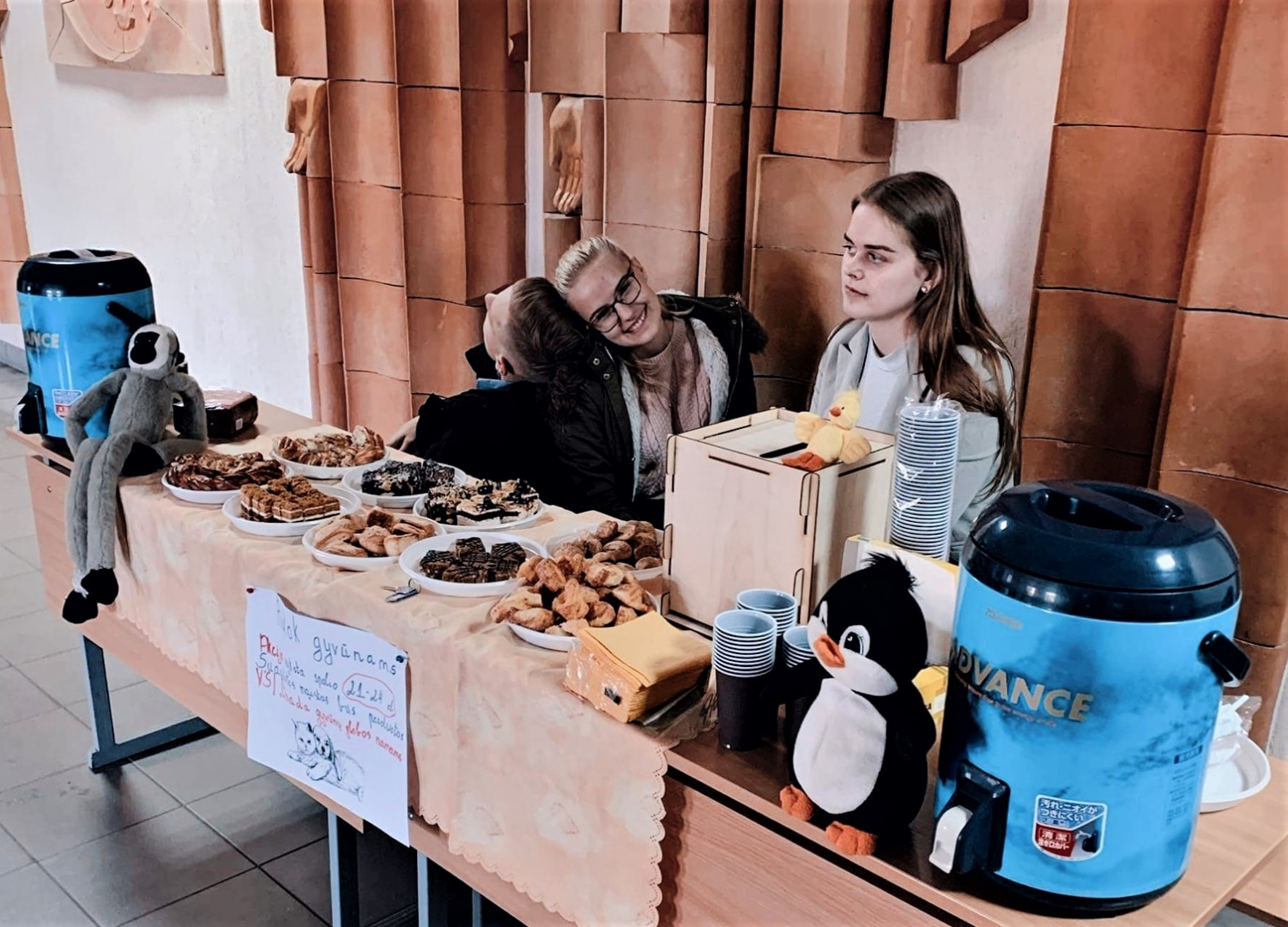 Ketvirtadienį (spalio 24 d.) Studentų atstovybės nariai kolegijos bendruomenės narius kvietė pasivaišinti pyrago gabalėliu, karštos arbatos puodeliu ir pagal galimybes paaukoti – kad ir kuklia pinigų suma prisidėti prie akcijos.