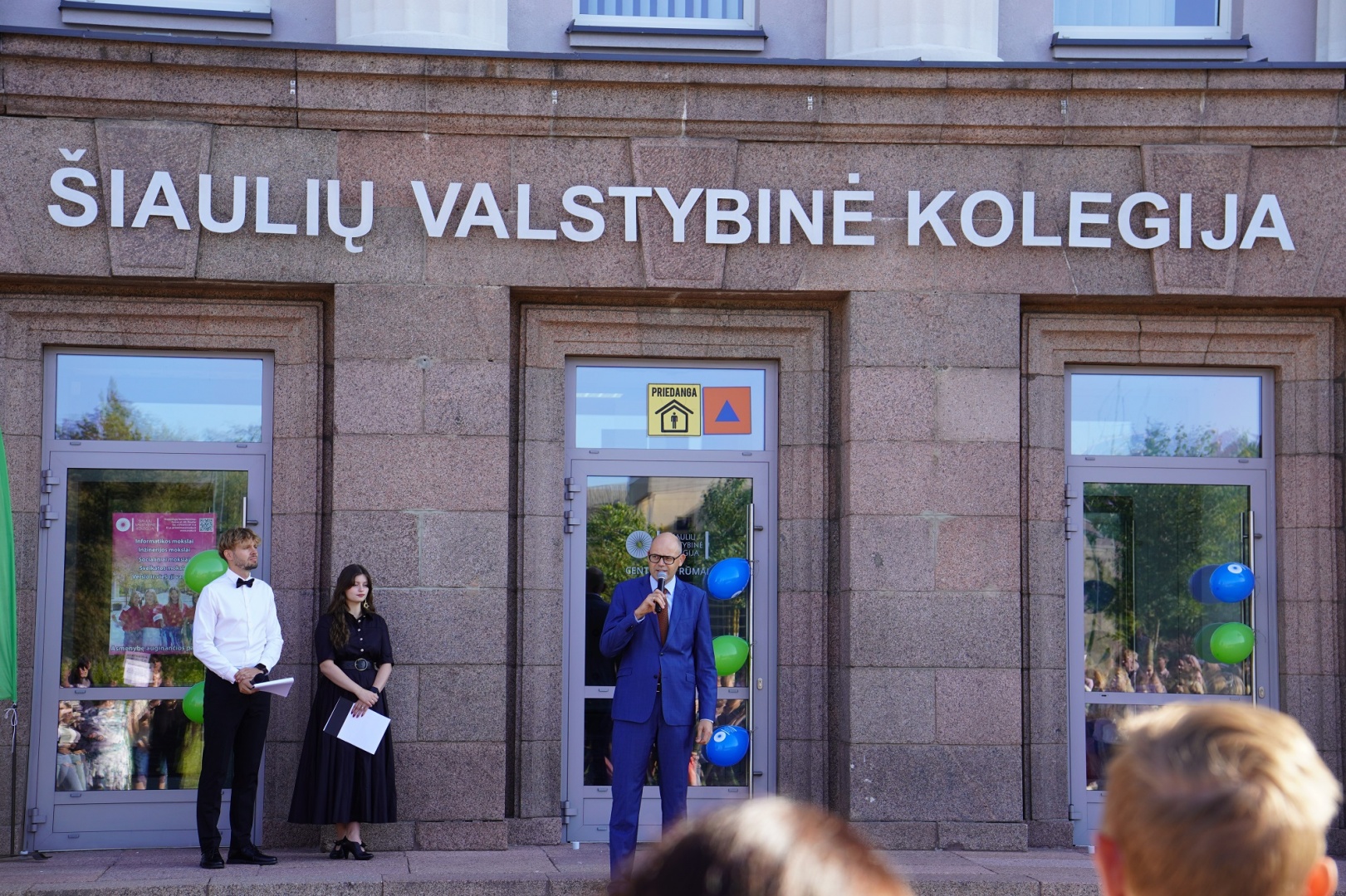 Šiaulių valstybinės kolegijos studijų metų pradžios šventė patikėta puikiam vedėjui duetui – Tarptautinio verslo programos studentei Rositai Joanai Tarasevičiūtei-Paulauskienei ir Reabilitacijos katedros dėstytojui Dovydui Gedrimui. Muzikinius linkėjimus šventės dalyviams skyrė ŠVK studentai Tomas Mackevičius ir Indrijana Indriekutė.