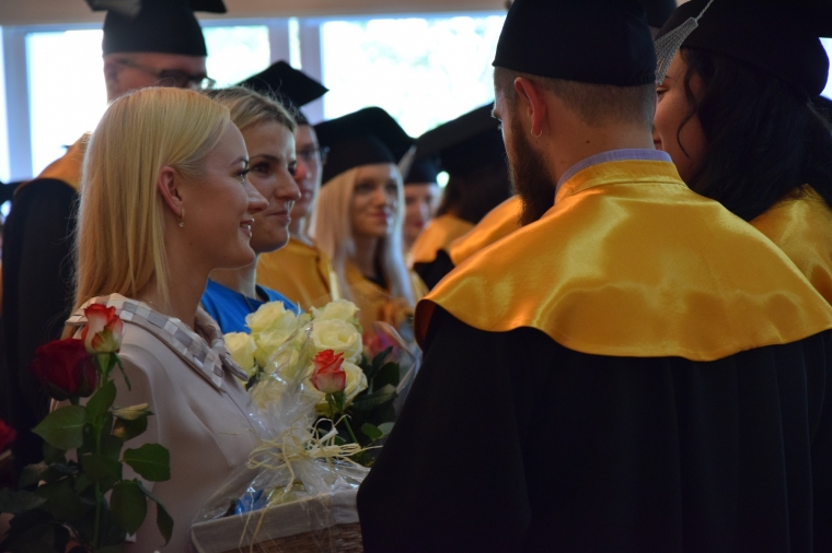Trečiadienį diplomų įteikimo šventė vyko Sveikatos priežiūros fakultete, ketvirtadienį į iškilmingą ceremoniją rinkosi Verslo ir technologijų fakulteto studentai.