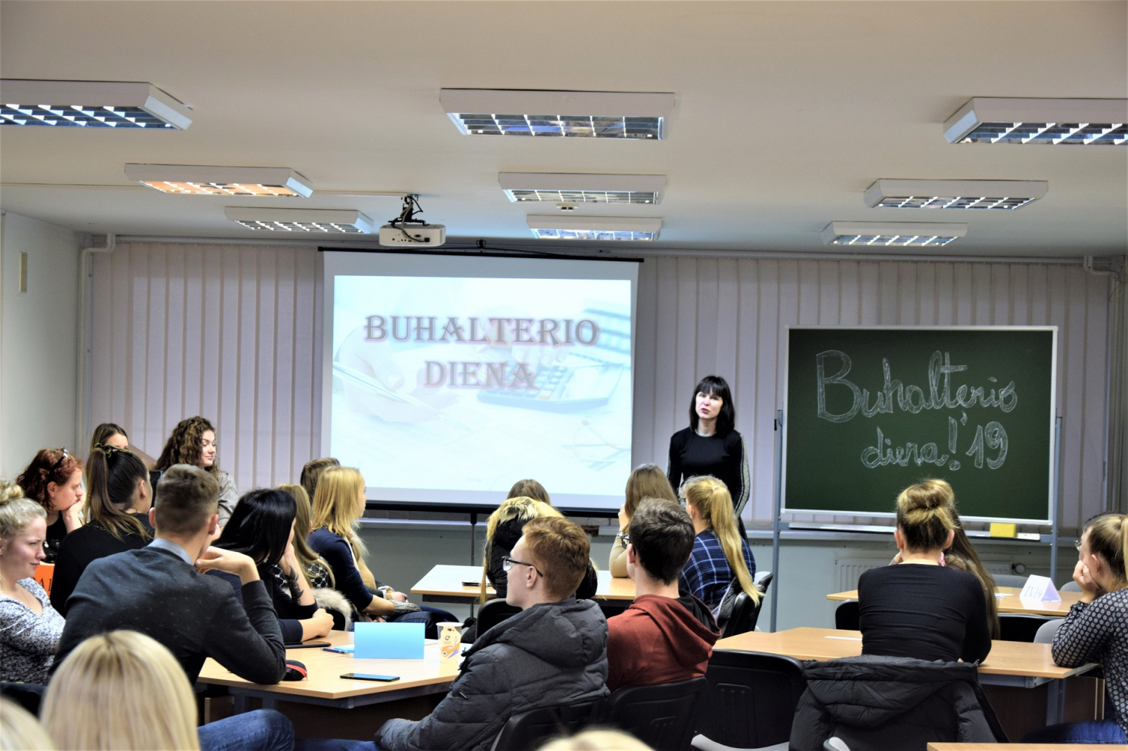 Buhalterių dienos minėjimą tradiciškai inicijuoja Verslo ir apskaitos katedra. Renginį, skirtą minėtinai dienai, šiais metais patikėta organizuoti Buhalterinės apskaitos studijų programos trečio kurso studentams. Į renginį susirinkusių grupių laukė kūrybinė užduotis ir loginio mąstymo, pastabumo, komandinio darbo pareikalavęs protmūšis.