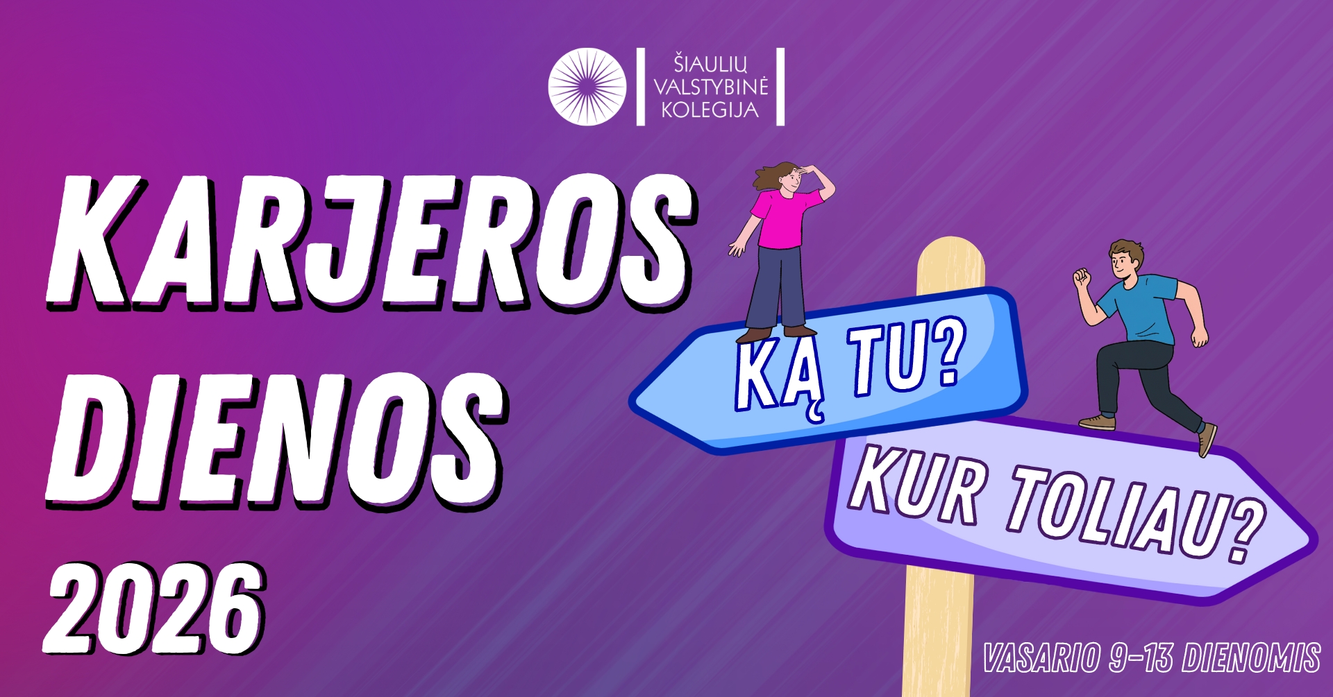 Vasario 9–13 dienomis Kolegijoje planuojamas renginių ciklas „Karjeros dienos 2026. Ką tu? Kur toliau?“.