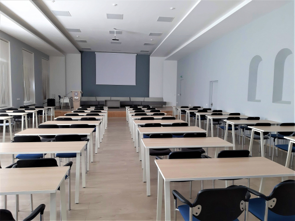 Šalia „Šiaulių“ viešbučio, t. y. strategiškai patogioje vietoje, galime pasiūlyti atnaujintą ir šiuolaikišką Verslo ir technologijų fakulteto II rūmų salę (Vilniaus g. 137), joje yra vietos 75 žmonėms.